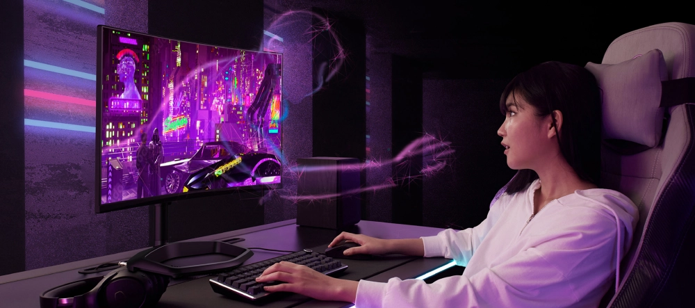 صفحه نمایش خمیده: مانیتور GM27-CQS که با انحنای 1500R و بر اساس طبیعت دید بشر ساخته شده است باعث افزایش چشمگیر میدان دید می شود. این صفحه نمایش خمیده دارای مناسب ترین میزان انحنای ممکن بوده و به شما تجربه‌ای فراگیر و غوطه‌ورکننده در بازی‌ها ارائه می‌دهد.